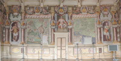 Alla fine del 1500, durante i lavori di ristrutturazione del palazzo, si decise di ridipingere l'antica sala Herculea (oggi distrutta), con nuove decorazioni in linea con i precetti formulati nel Concilio di Trento.