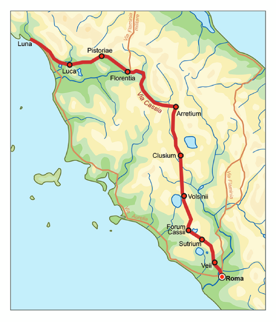 La Via Cassia è una delle grandi strade consolari romane, che da più di duemila anni collega Roma all’Etruria.