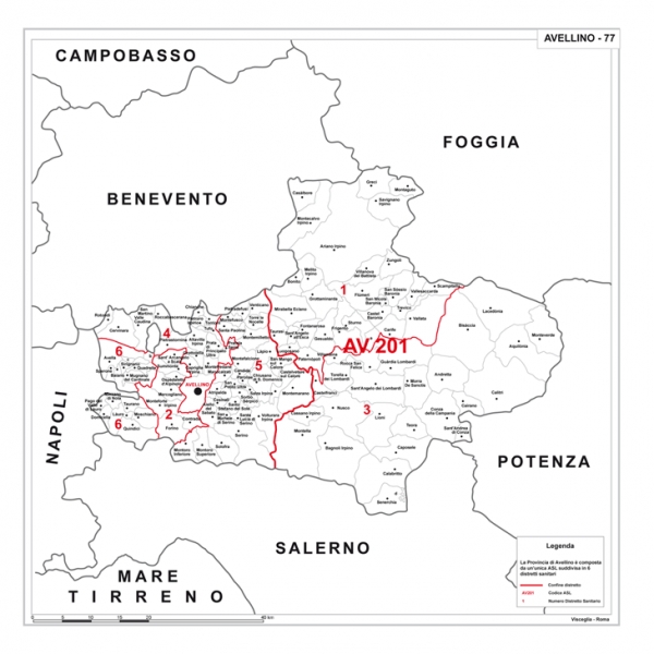 Carta geografica provinciale, stampata in bianco e nero, con o senza CAP e ASL.